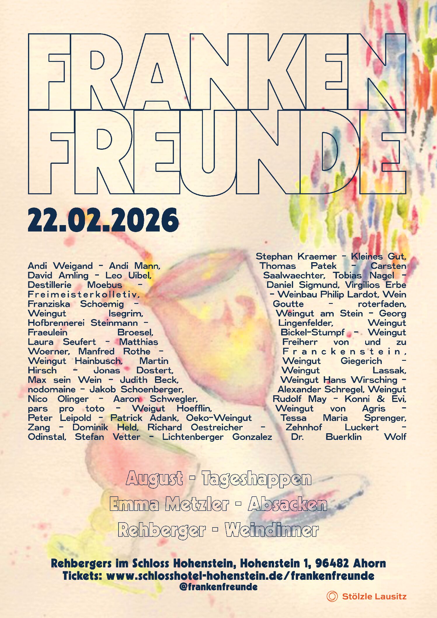 Mächtig stolz darauf sind wir, dass wir am 22.2.26 zum ersten Mal unsere Weinmesse FrankenFreunde ausrichten können.